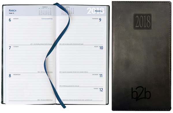 Week To View Portrait pocket diaries. Bound in Rio with thread perimeter stitching. White paper.
