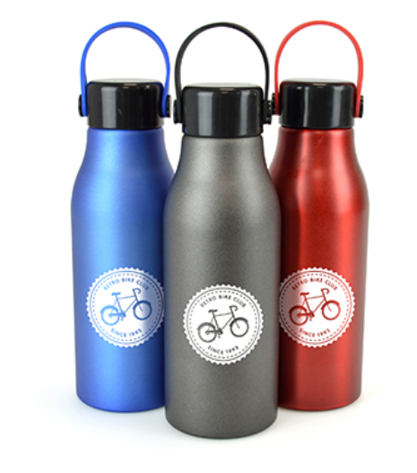 680ml single walled aluminium drinks bottle with black PP plastic secure screw on lid