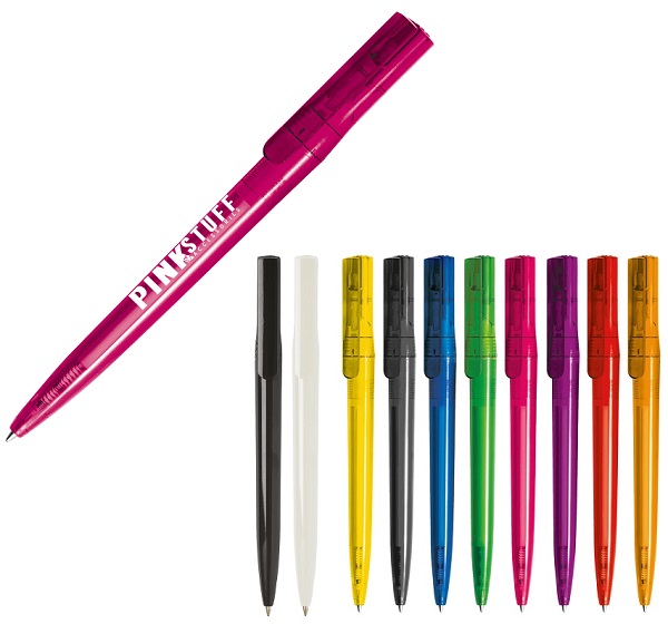 Quality twist action ball pen made in Europe from recycled PET from used water bottles.