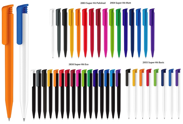 Evergreen and million seller. Ballpen with opaque shine-free finish barrel and matching opaque high-gloss clip (Matt), Opaque high-gloss finish barrel & clip (Polished), opaque high-gloss finish black barrel made from 95% recycled material, and coloured clip (Recycled) & opaque high-gloss finish white barrel, and clip in one of 8 popular colours (Basic). Fitted with large capacity Magic Flow refill.