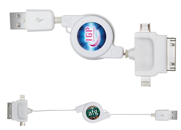 with fittings to charge iPhone 4, 5 and 6 models and micro USB.